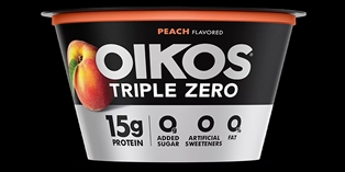 Enjoy epic tastes with Oikos Triple Zero Nonfat Peach Yogurt Pack. This Peach flavored yogurt packs a punch with 15 grams of protein per serving, so you can always have dependable, high protein snacks with zero holding you back. With 0% fat, 0g added sugar* per 5.3 oz serving and 0 artificial sweeteners, enjoy your snack time with zero regrets